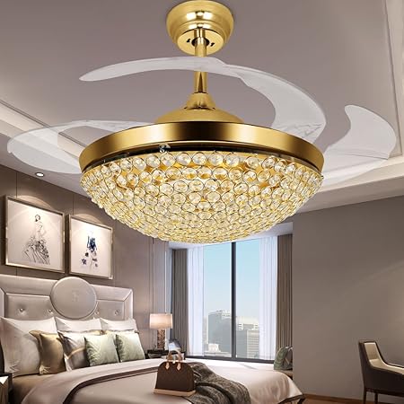 Crystal ceiling fans with lights and remote led 3 light settings modern inconspicuous retractable pendant fan for dining room bedroom ceiling fan42 gold gold 49 out of 5 stars 11 26999 269. Urinate offer gold invisible ceiling fan temperate pendent hanging down lamp blade interior decoration removed. Browse ceiling fan with light kit Au cap fans 10 available at lamps plus.